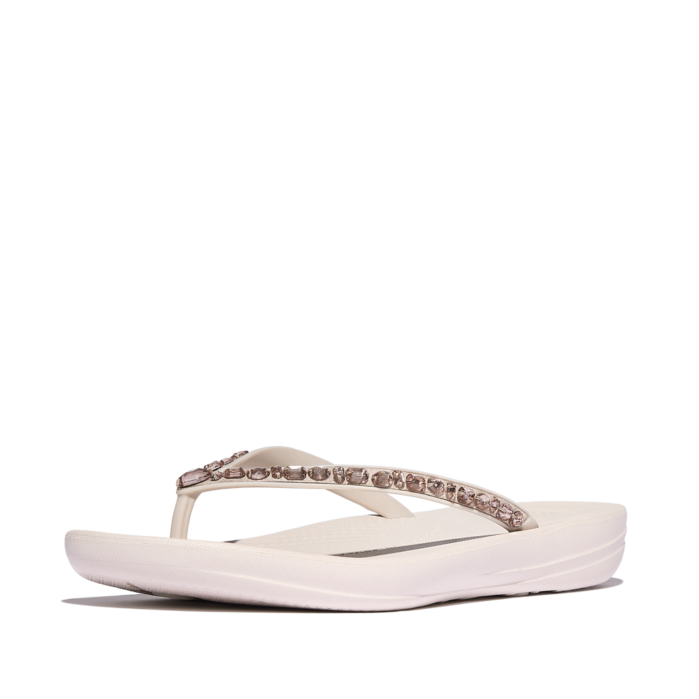 FitFlop FitFlop Lulu Crystal Embellished Toe-Post - Latte Beige Sandals