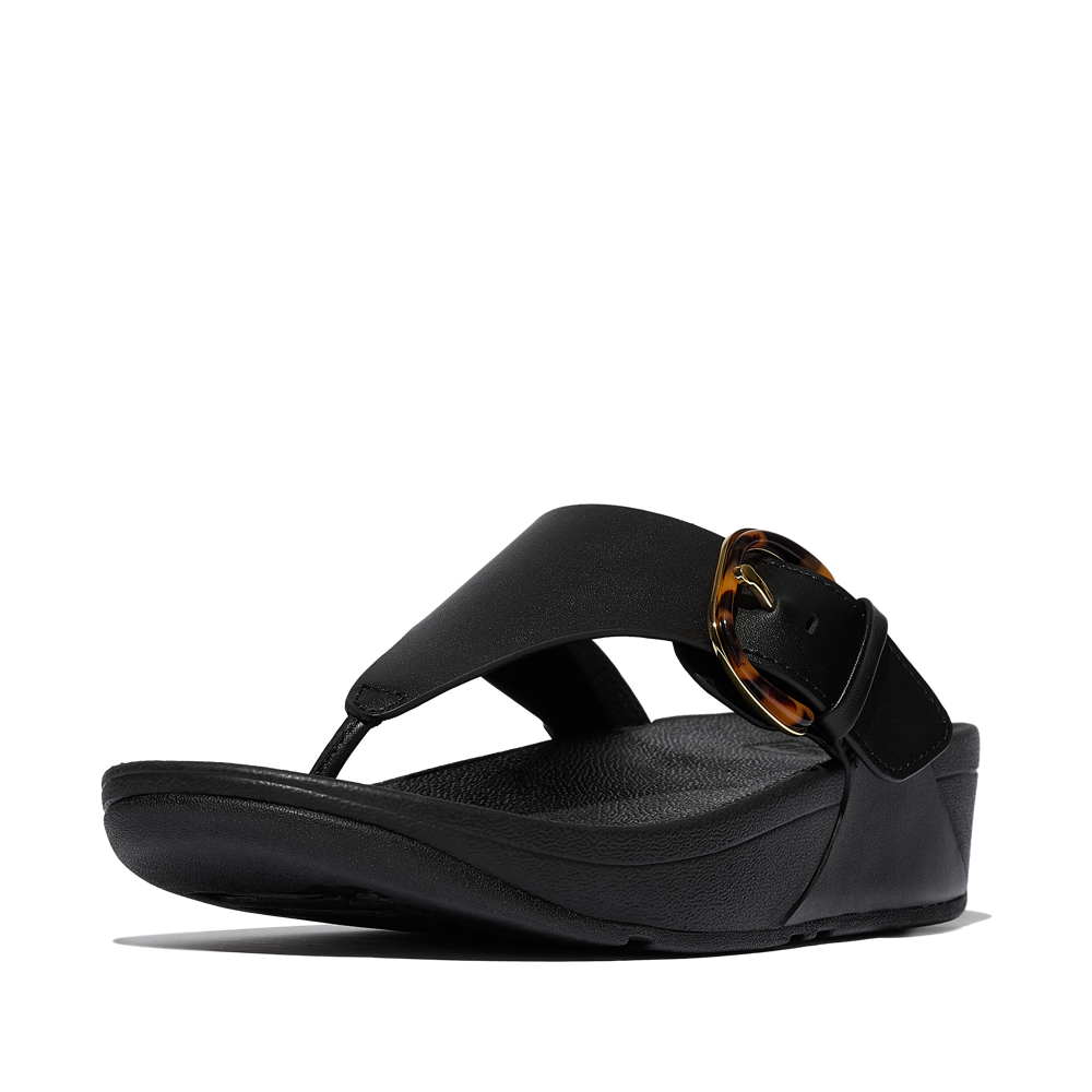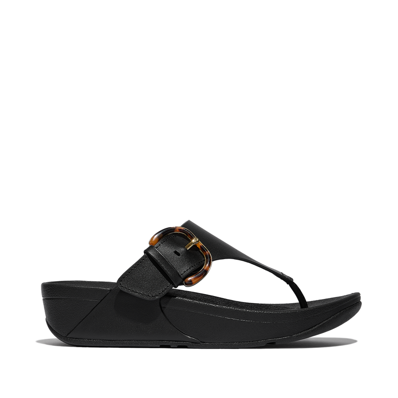 FitFlop FitFlop Lulu Resin-Buckle Leather Toe-Post - All Black Sandals
