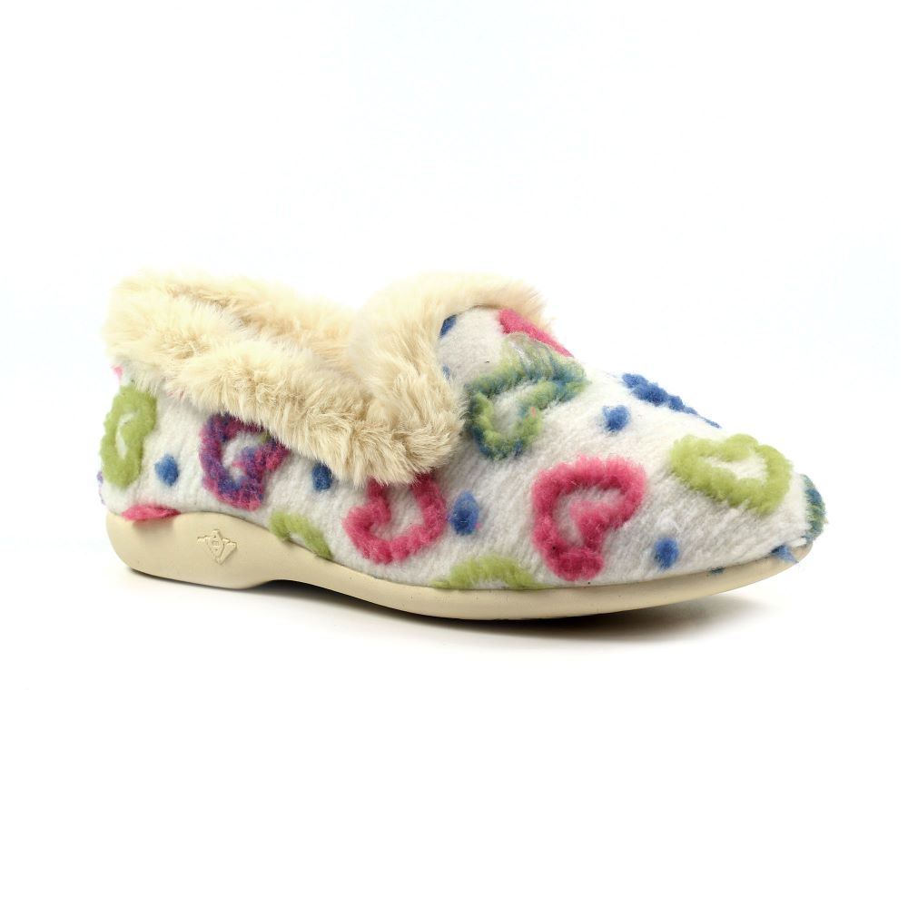 Meet the Truffle full slipper in white, designed with comfort and style in mind. Featuring faux fur linings and trims, it wraps your feet in luxurious warmth. The easy slip-on design ensures convenience, while the padded insole offers comfort with every step. Adorned with a charming heart pattern, these slippers are a delightful addition to your lounge wear collection.