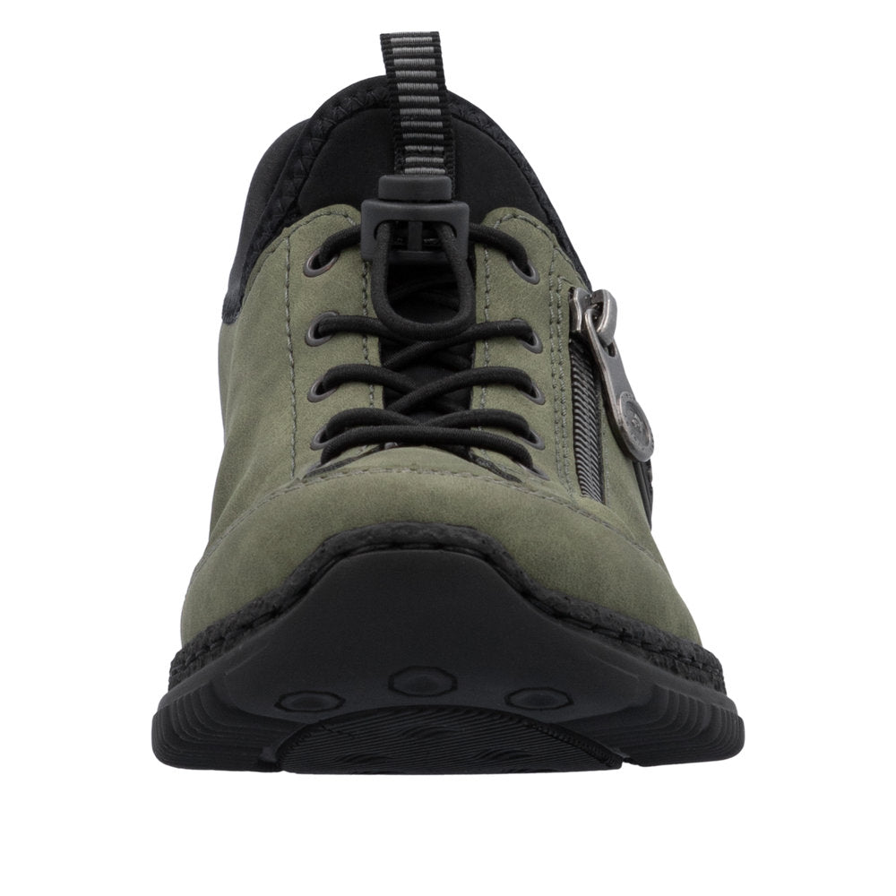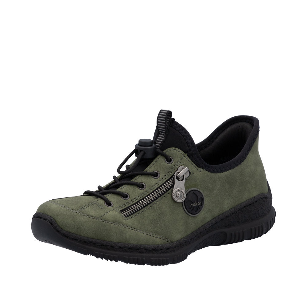 You'll be cool and casual on the move in these light green Rieker shoes. Made with the stitchdown construction, the model is robust, flexible and offers a perfect fit. The elastic bands also ensure that the shoe fits at all times. The shock-absorbing and light sole ensures a pleasant walking sensation even when worn for long periods, and the extra soft MemoSoft cover sole provides additional comfort. Ready2GO: thanks to the slip-on feature, the shoe can be put on super quickly without using your hands.