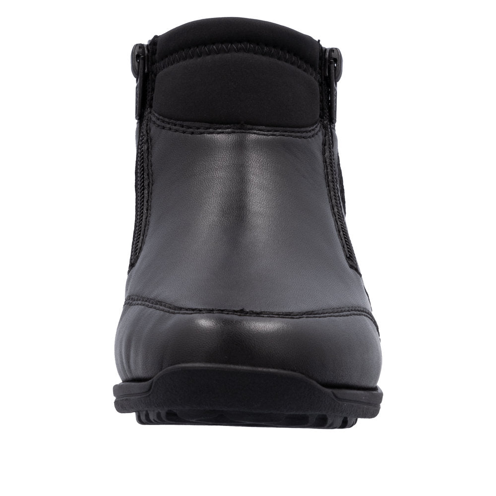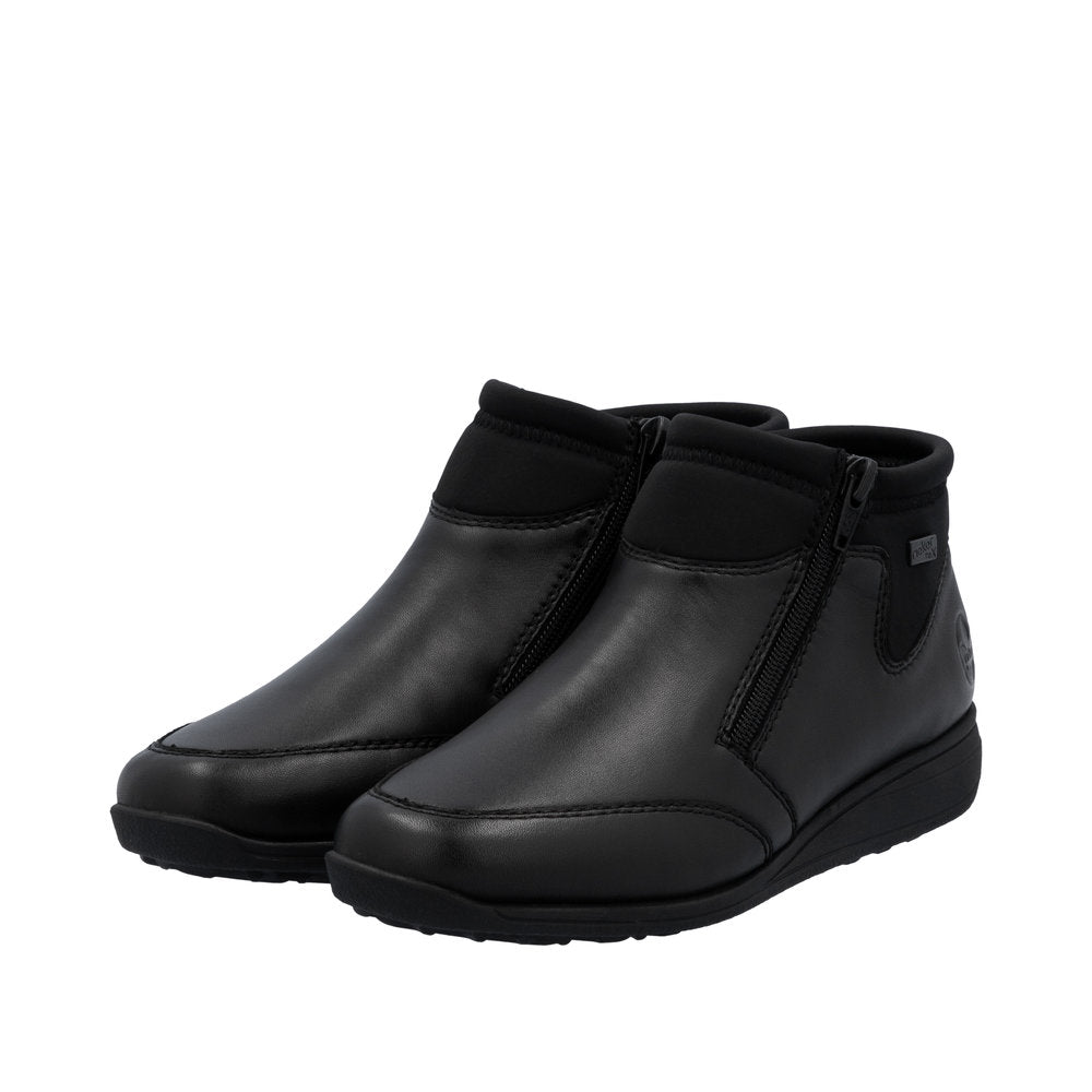 These black Rieker ankle boots made of smooth leather are the perfect companion for any occasion. The zipper allows for the shoe to be put on very quickly. The sole is grippy and ensures good traction at all times. The padded and removable insole offers comfort and functionality day after day. The extra width gives you more space in the shoe. The RiekerTEX membrane offers protection against wetness and wind. Fashionable well-being in the style of Rieker!