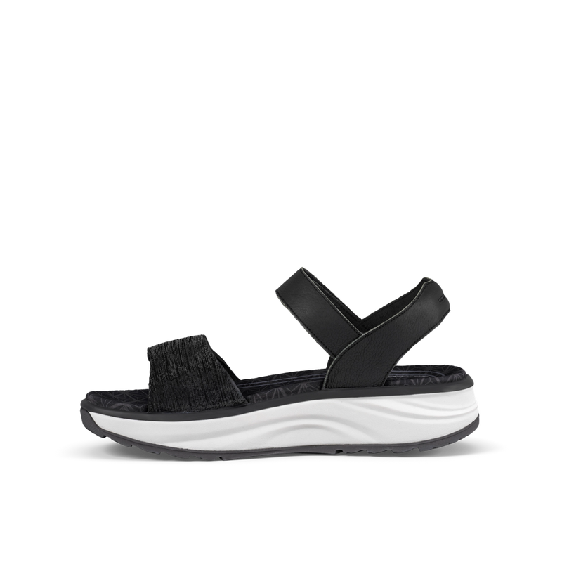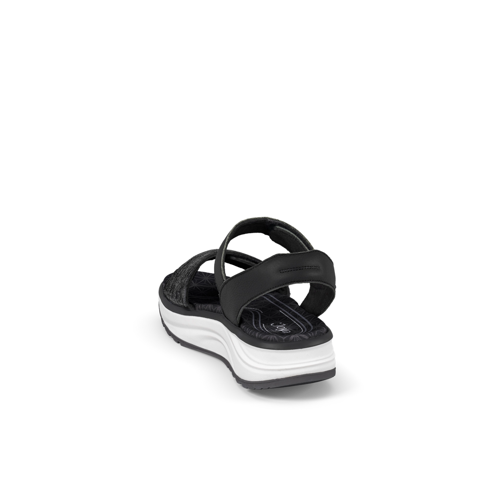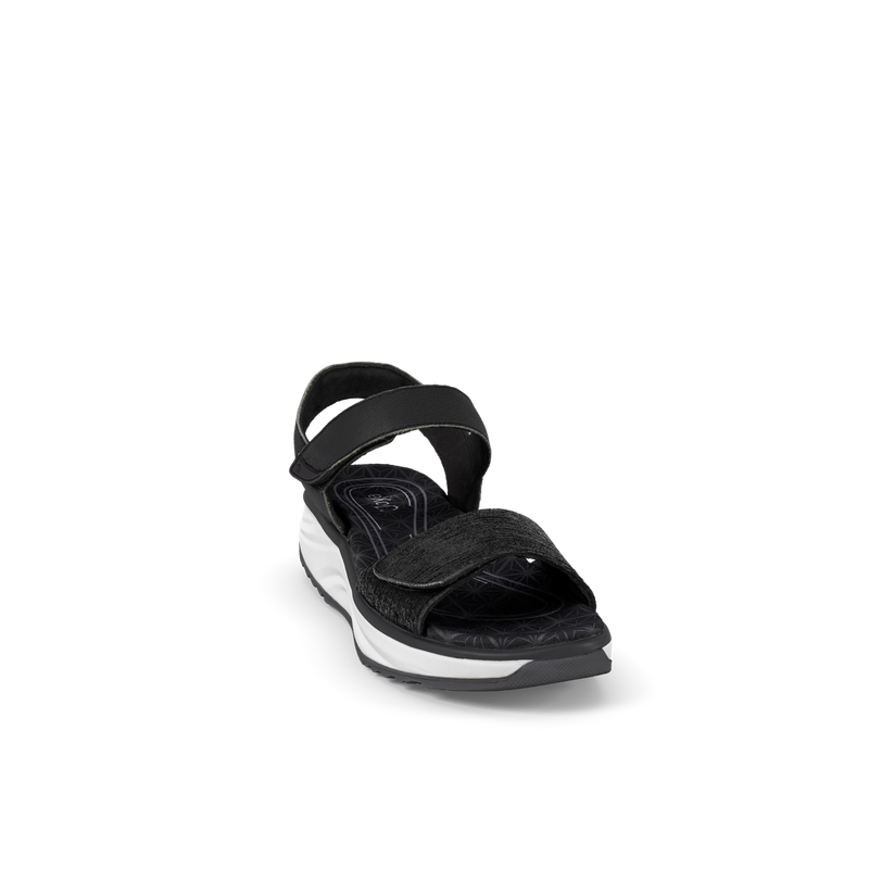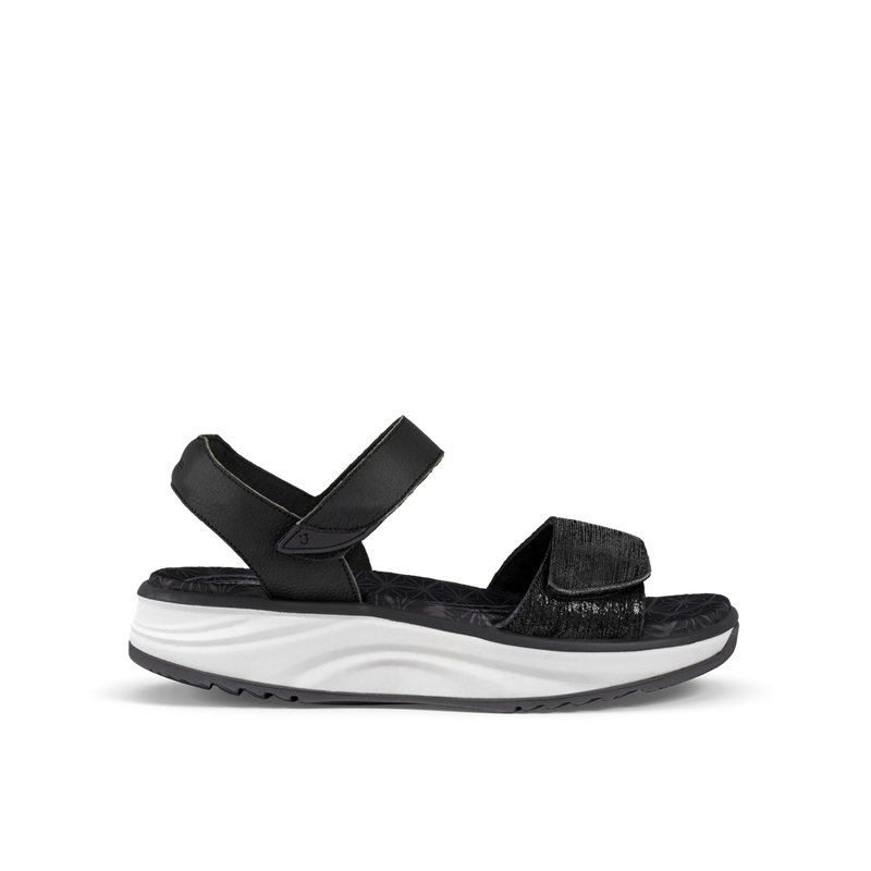 Exquisite full grain leather and sparkling velour leather sandal with adjustable velcro straps on the instep and forefoot. Fitted with an ergonomic footbed wrapped with soft, velvety microfiber. Implemented with the Joya Active sole technology that guarantees an ideal combination of cushioning, rebound and stability. For dynamic people always on the move who need comfort in action and performance on every surface.
