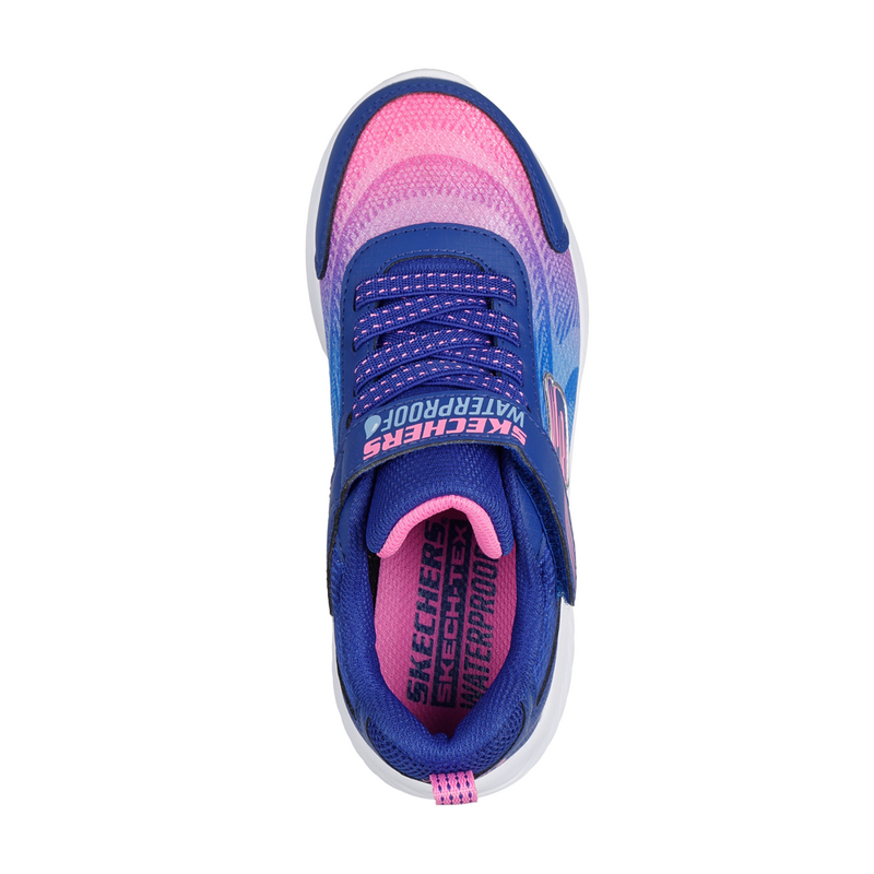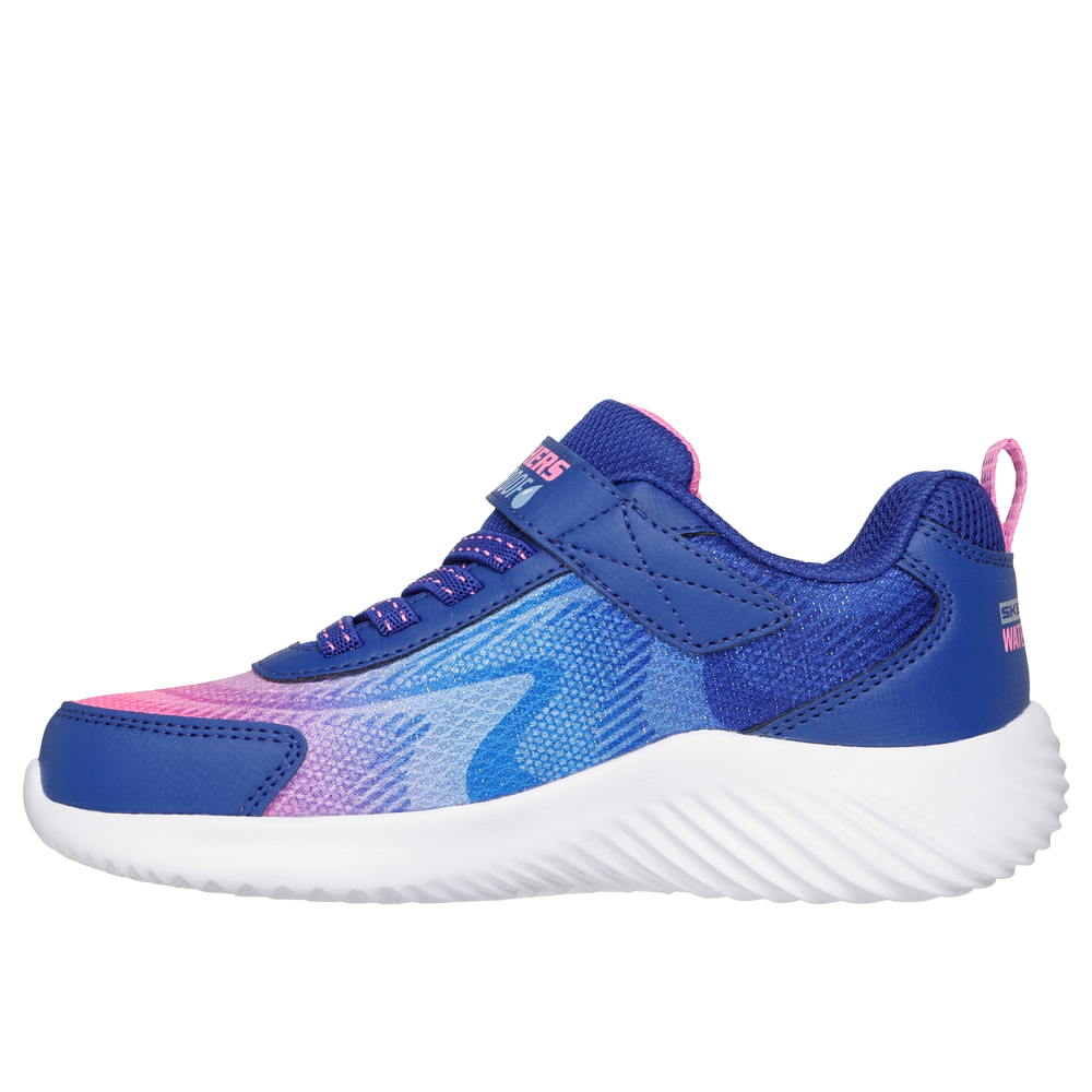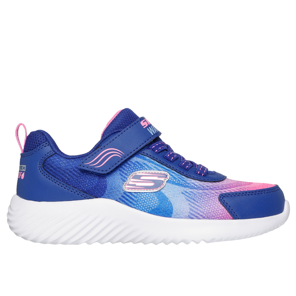 Feet-loving comfort and sparkly style combine in Skechers Bounder - Hydra Cool. This waterproof Skechers adaptive closure design features an ombre sparkle mesh and synthetic upper with stretch laces, an adjustable instep strap, and a cushioned comfort insole.